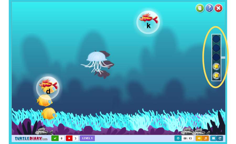 Type the letters in the bubble to free the fish. 🐟
